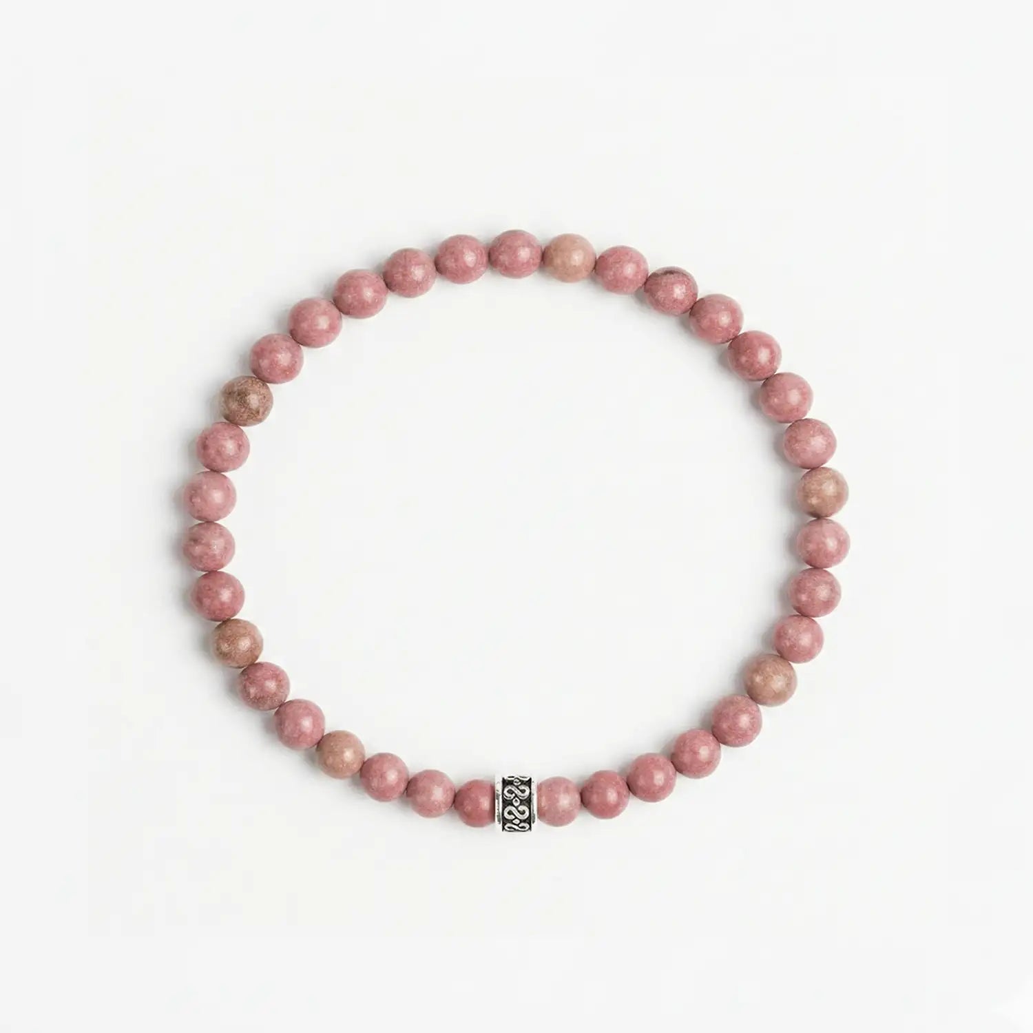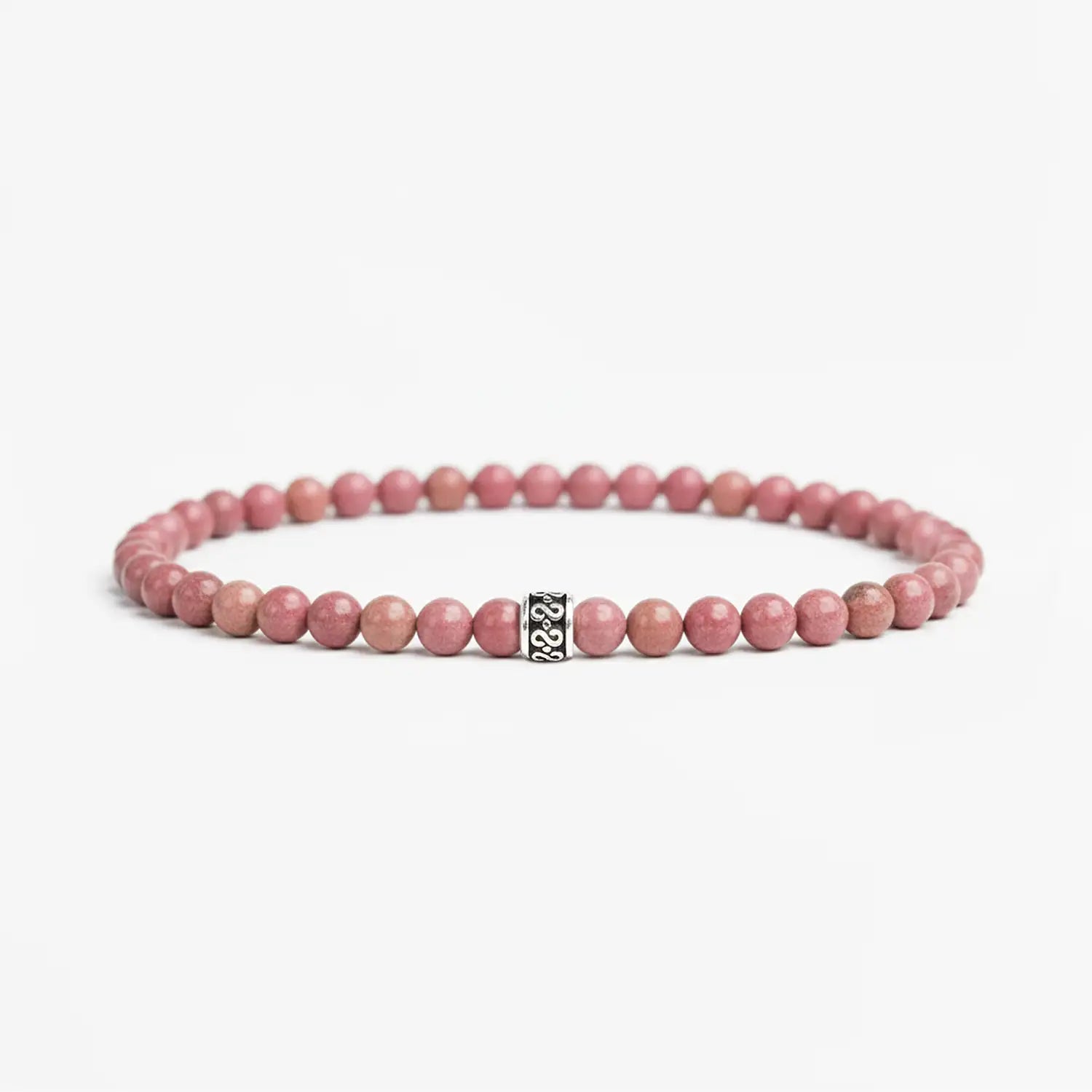 Created to stack seamlessly, the 4mm size is our smallest bead, offering a sleek and sophisticated profile. Designed for versatility, this minimalist bracelet is handmade muted pink Rhodonite gemstones and finished with our signature 925 sterling silver bead.