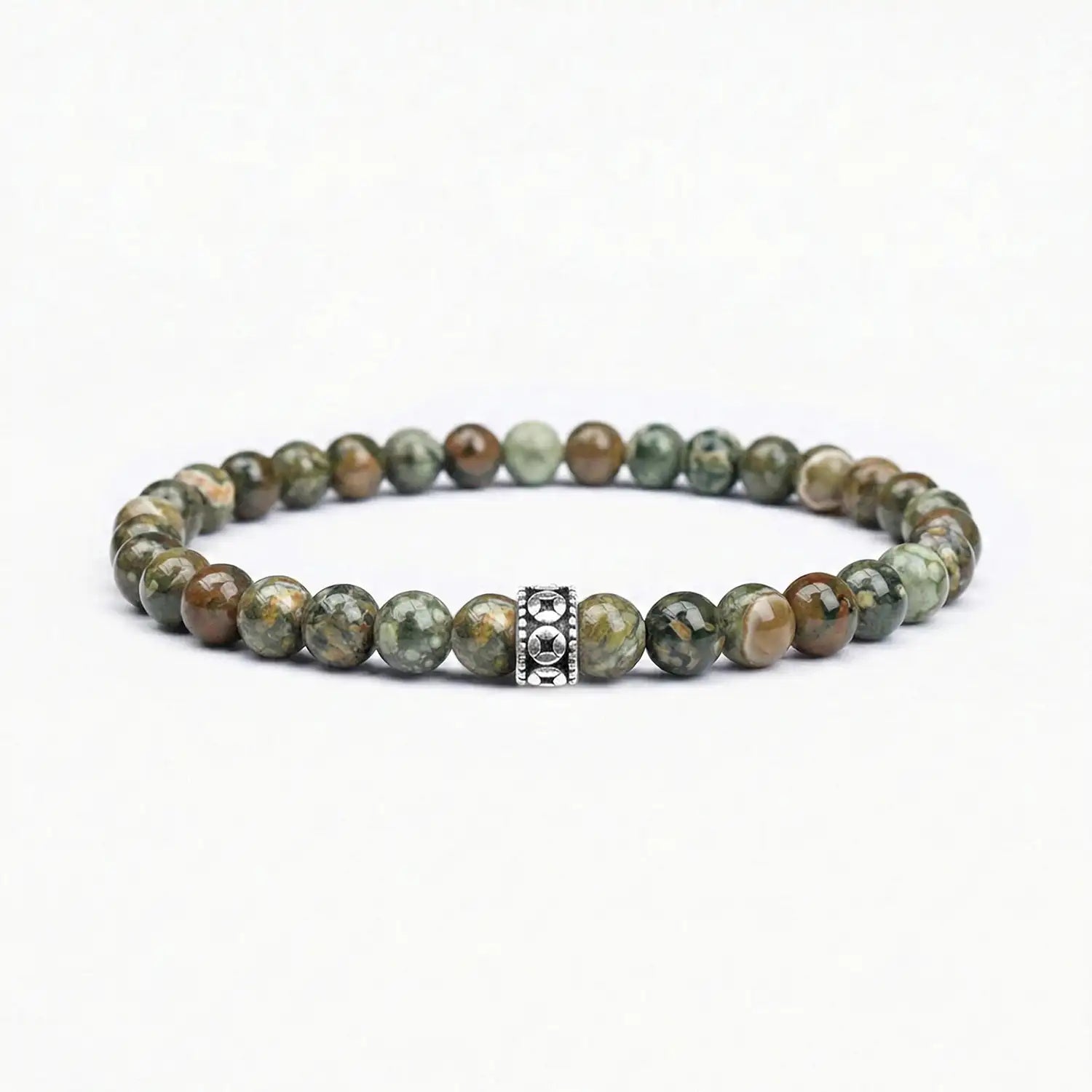 Rainforest Jasper 6mm 925 Sterling Silver Bracelet